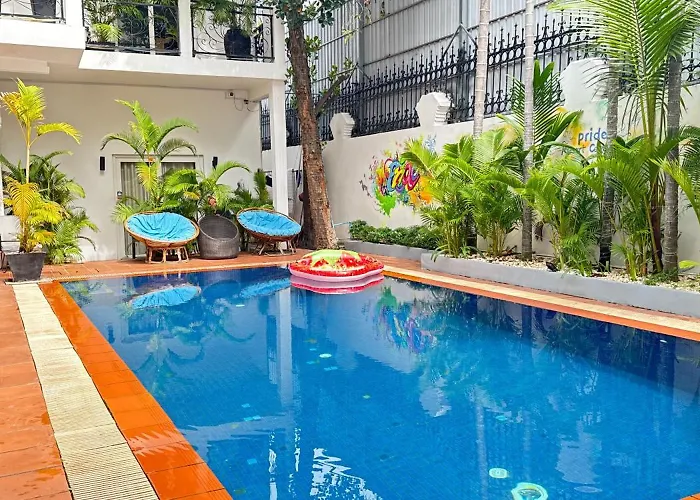 Comprenant 12 chambres, Pride Resort Cambodia Phnom Penh est situé près le quartier de divertissements "Daun Penh" à Phnom Penh à seulement 1 km du Marché central. Il fournit une piscine extérieure et un Wi-Fi dans les zones publiques.